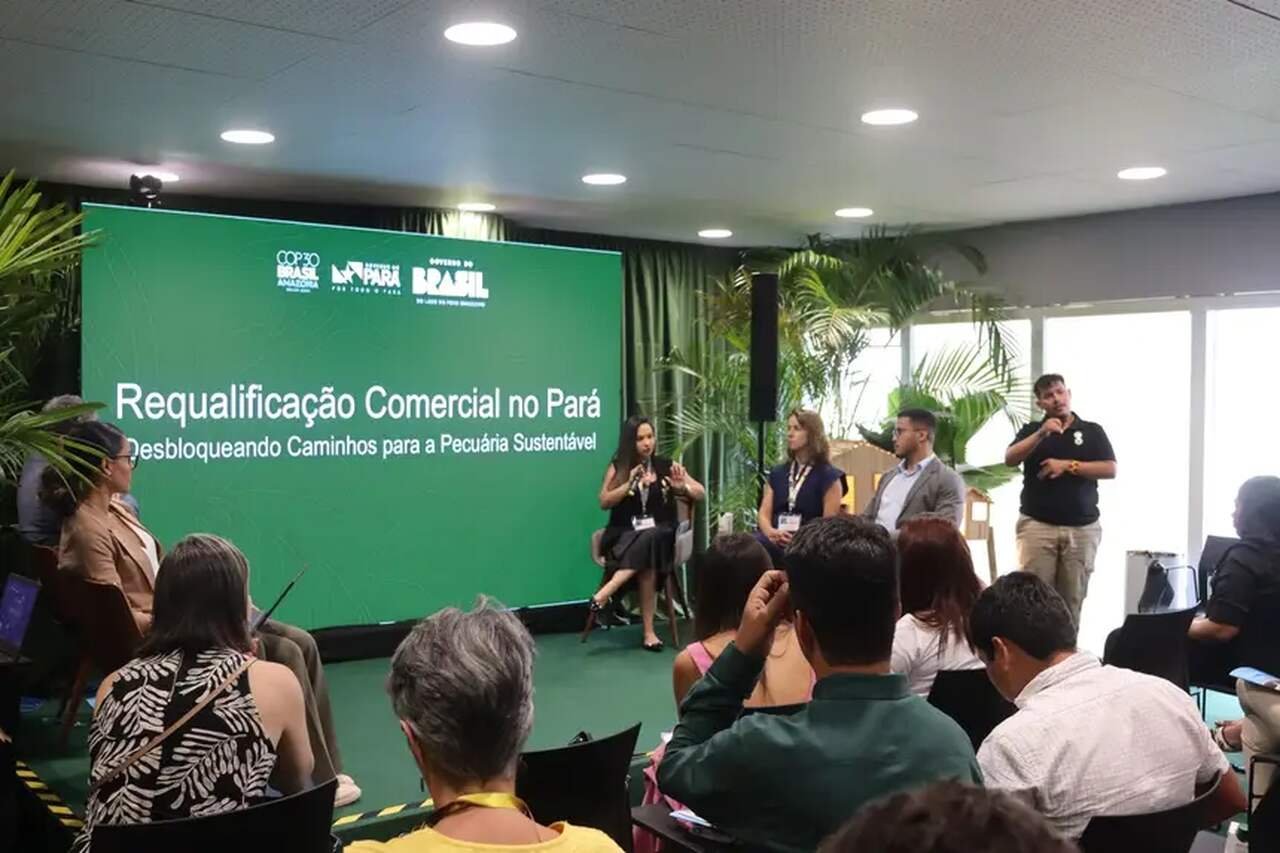 A Secretaria de Estado de Meio Ambiente e Sustentabilidade do Pará (Semas) participou, nesta quarta-feira (12), do painel “Requalificação Comercial no Pará: Desbloqueando Caminhos para a Pecuária Sustentável”, ocorrido no Pavilhão Pará da Green Zone da COP30, fomentando a discussão e esclarecimentos sobre ações e iniciativas voltadas ao processo de consolidação de uma pecuária mais sustentável.